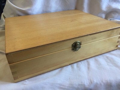 - Sewing Box Double Flip Top Light Brown Wood Hinged Handle Woodworking Joints 27 99 Picclick